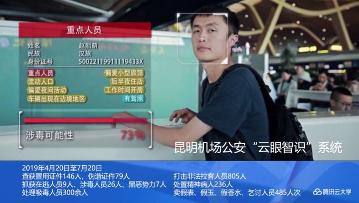 如果大家去昆明长水机场就可以留意到,有些巡逻的民警佩戴了很酷的眼镜,就是AR眼镜在安全领域内的应用。这套系统在公安那边叫云眼智识,它用来干什么的呢?