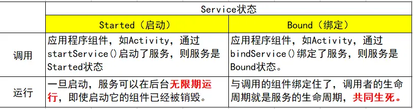- 必须在AndroidManifest.xml配置文件中以标签声明全部的Service。