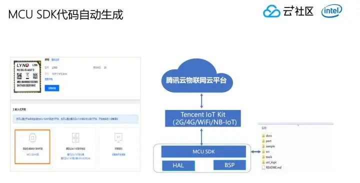 现在跟腾讯云合作的模块厂商有30多家,不同的厂商用不同的模块去集成腾讯云loT的IT指令级,在采购这些厂商模块的时候,可以自动下载安装一个指令包,就能完成整个云跟模块之间通讯工作,而不需要自己再通过Hell层去改造移植一套SDK,可以大大减少整个开发过程的工作量。
