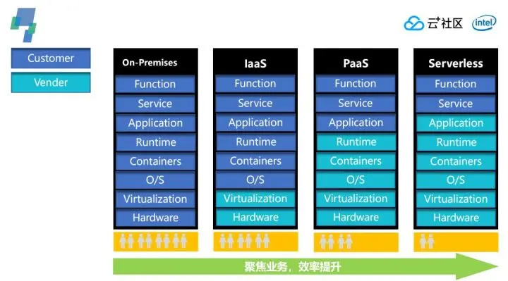 云计算提供了虚拟化的解决方案,在IaaS时代需要投入的成本就低了一些,可以直接购买和运维虚拟机。然后是PaaS时代,可以不关注机器直接使用平台服务,现在已经到了FaaS时代。随着云计算的发展,需要投入的人力和资金成本开始变得越来越少了,根本原因就是云厂商已经帮客户搞定了越来越多东西。