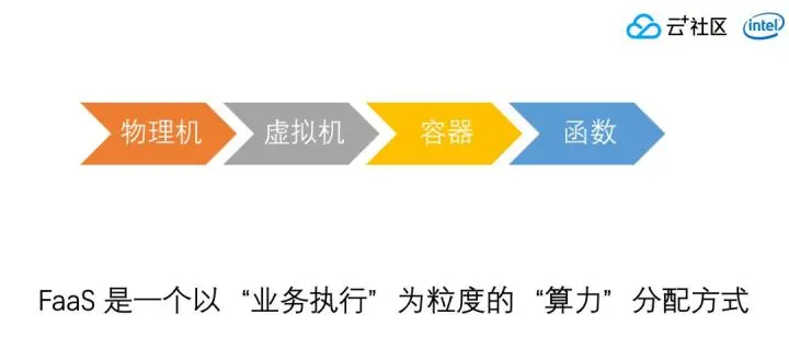 说到头来,FaaS 就是一个以业务代码的执行为粒度的“算力”的分配粒度。它不是以代码为粒度,不是以虚拟机为粒度,也不是以容器为粒度,而是以函数为粒度。
