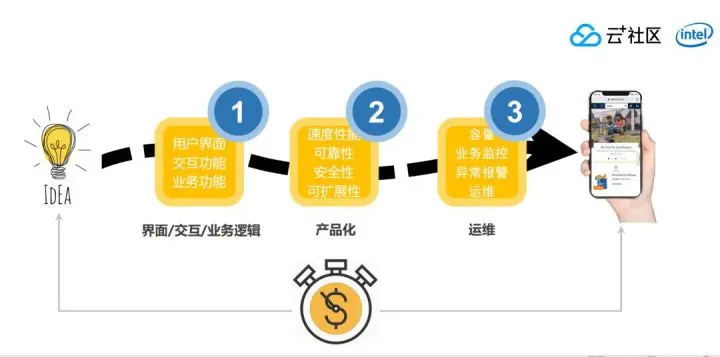 上云这两个字说起来简单,但是实际上云会涉及到云计算方面各个层面的技术储配,一些新的开发、部署和运维方式。整个上云过程中需要很多的知识和经验,时间成本也不小。根据上面的分析,我们知道从一个idea到线上产品,这条路其实很长。