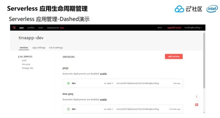 如何看监控、告警、日志,如何追查问题?在Dashboard上面同样也会有很多跟运维相关的数据体现。所以Serverless不是没有运维,而是用更加高级的方式去做运维,使得运维的工作更加贴近业务。