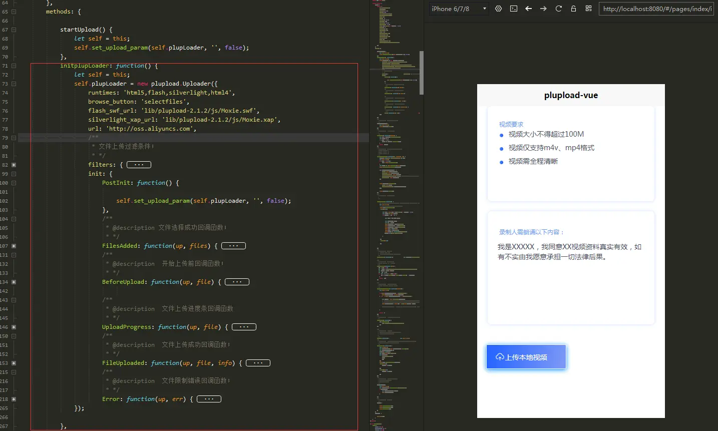 /** * @description 开始上传前回调函数; * */ BeforeUpload: function(up, file) { self.tipText="视频上传中"; //mp4,M4V,mov,MP4,m4v,MOV console.log(file); self.set_upload_param(up, file.name, true); }, -