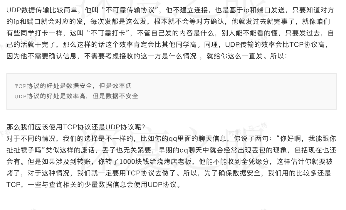 - UDP与TCP比较说明