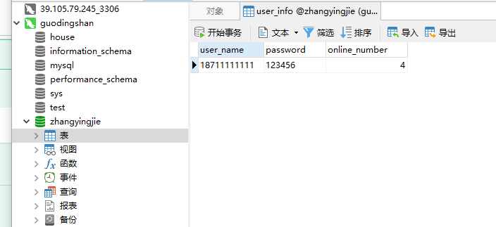 database: 'zhangyingjie', // 使用哪个数据库