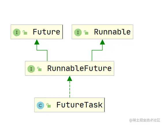 FutureTask 可以说是 Future 和 Runnable 的结合,我们可以将 Runnable 看作是生产者,Future 当做是消费者,生产者通过 run 方法计算结果,消费者通过 get 获取结果