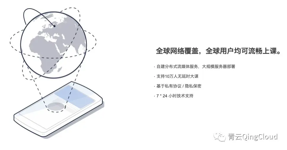 即便如此,课程中卡顿、画质清晰度等问题依然严重。多贝云教室的出现,完美解决了上述难题,不需要任何技术开发,开通即可使用,借助青云QingCloud 公有云强大的计算能力和网络能力,轻松实现单教室 10 万人同时在线、1080P 超清画质和跨国延时低于 100ms。