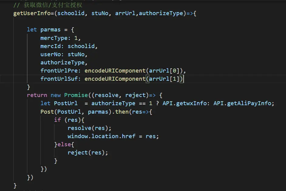 最近做的一个微信公众号里面,需要与后端联调做微信与支付宝静默授权,先通过判断路由参数是不是从后端重定向过来的链接,再请求后端接口。直接看代码: