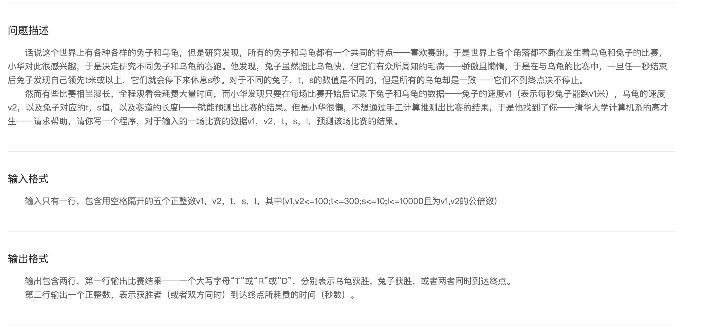 /*龟兔赛跑预测