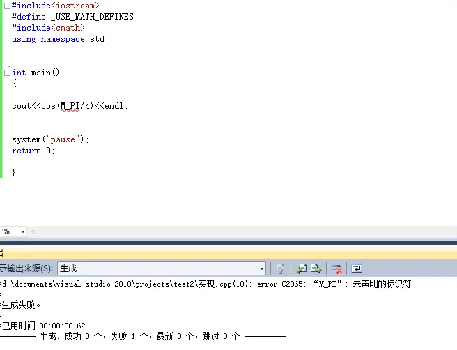 但是在math.h中默认并没有定义_USE_MATH_DEFINES,因此如果需要使用M_PI的话需要在引用Math.h前先定义_USE_MATH_DEFINES