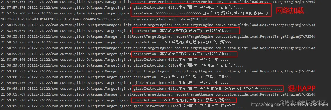 // 继承WeakReference(目的:为了监听这个弱引用 是否被回收了) public class CustomWeakReference extends WeakReference { public String key; public CustomWeakReference(Object referent, ReferenceQueue queue, String key) { super(referent, queue); this.key = key; } } /** * 目的:为了监听这个弱引用 是否被回收了 * queue.remove() 会阻塞线程 * * @return */ public ReferenceQueue<Value> getQueue() { if (queue == null) { queue = new ReferenceQueue<>(); // 监听这个弱引用 是否被回收了 thread = new Thread() { @Override public void run() { while (!isCloseThread) { if (!isShoudonRemove) { try { // 阻塞式的方法,被动调用queue.remove(),进行回收 Reference<? extends Value> remove = queue.remove(); CustomWeakReference customWeakReference = (CustomWeakReference) remove; if (map != null && !map.isEmpty()) { // 移除容器 !isShoudonRemove:为了区分手动移除 和 被动移除 map.remove(customWeakReference.key); } Log.d(TAG, "getQueue remove "); } catch (InterruptedException e) { Log.d(TAG, "getQueue InterruptedException e :" + e.getMessage()); e.printStackTrace(); } } } } }; thread.start(); } return queue; }当活动缓存的值不在被使用时,从活动缓存移除,并加入都内存缓存
