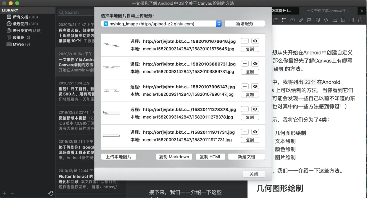 如果图床配置好之后,就可以上传图片到图床,可以很方便的复制markdown格式的文章,去博客平台和公众号发布。