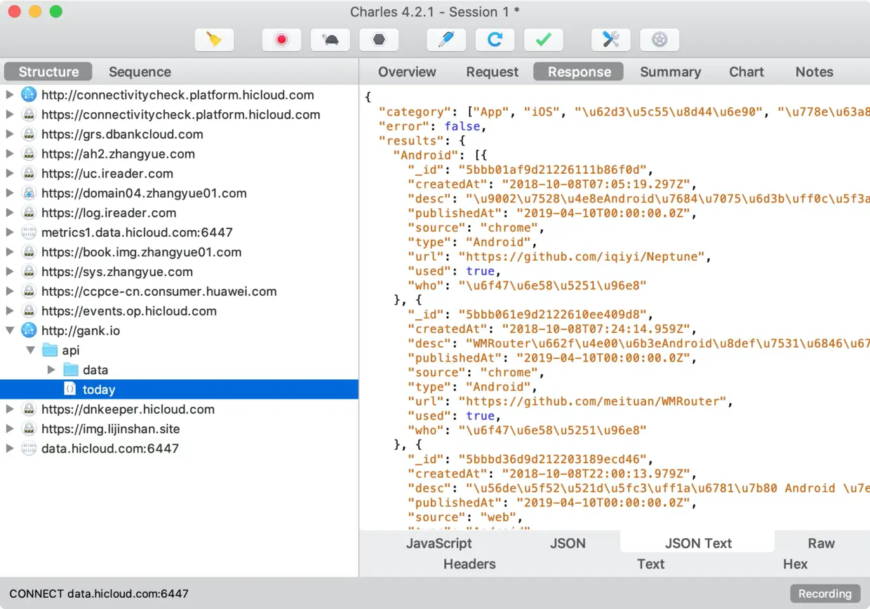 关于抓包的设置或者Charles抓包的教程请看:Mac上Charles抓包教程