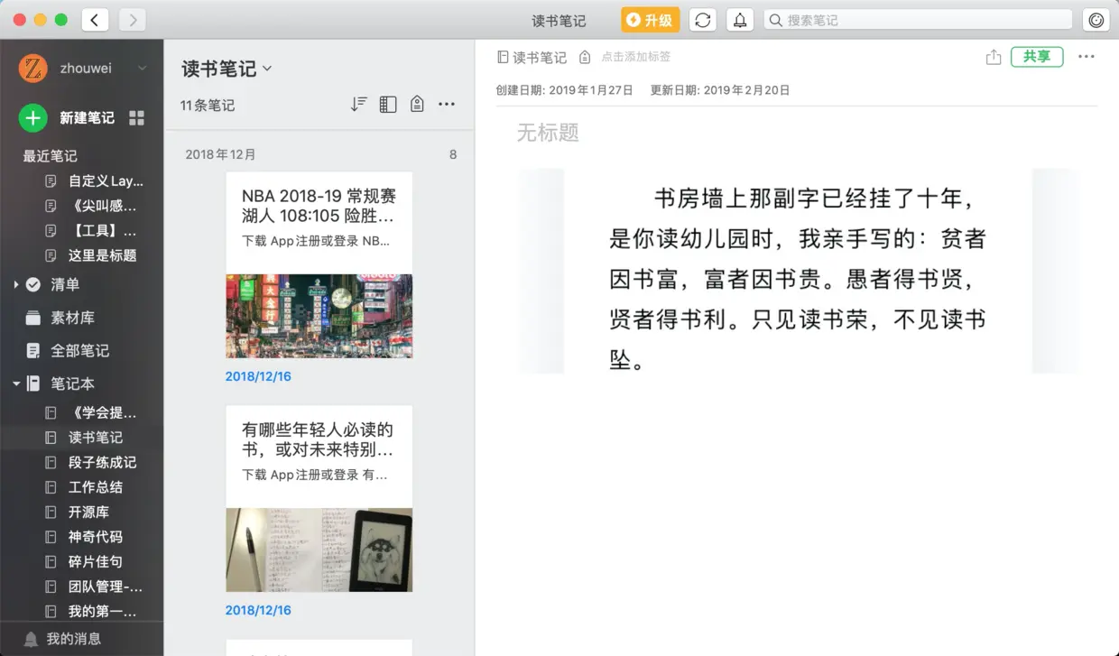 印象笔记是一款云笔记+加写作软件,其实我很早就是印象笔记的忠实粉丝了,它的UI界面看起来真的很舒服,并且功能强大,文字、图片、视频、语音都可以记录,免费版本支持同时2台设备共享,这对于大多数人来说已经够了,PC + 手机。