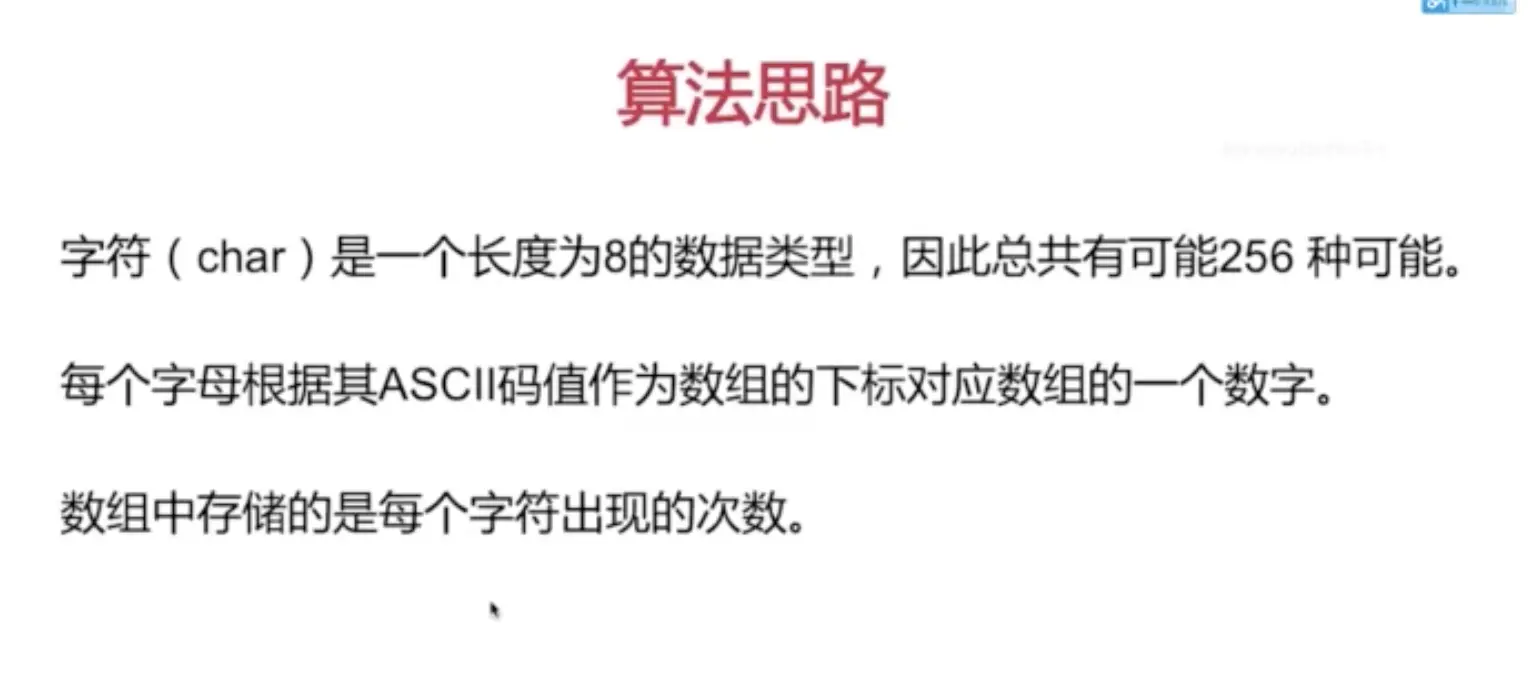 // 第一次遍历,先把字符串每个字母出现次数,存到256的数组