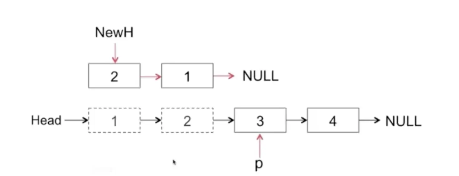 // 当前节点next指向新链表头部