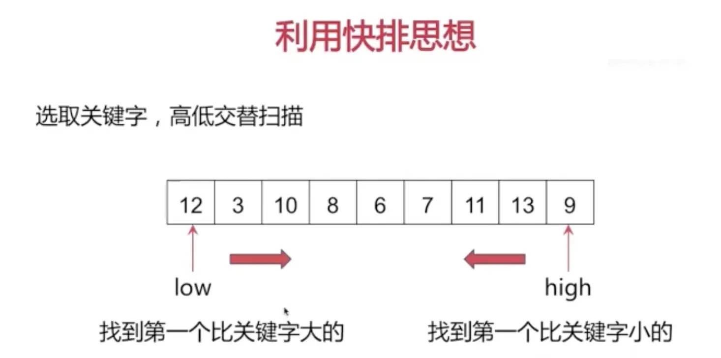 //使用快排思想,任意挑选一个元素,以该元素为支点,划分集合为两部分。