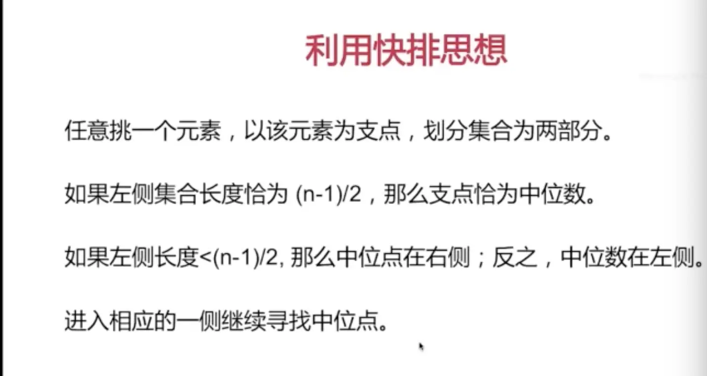 //如果左侧集合的长度==(n-1)/2,那么支点就是中位数。