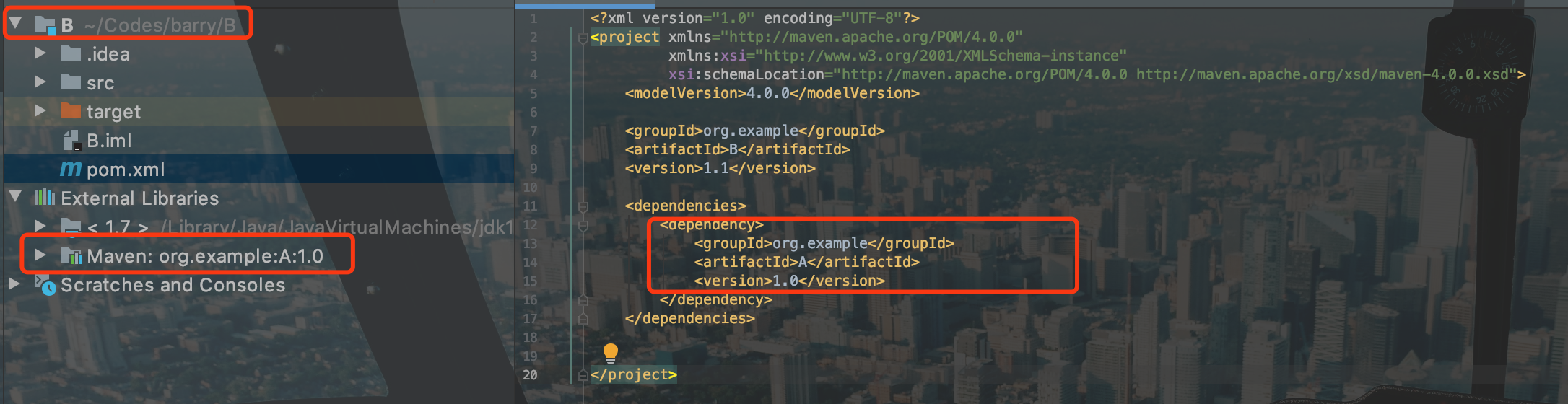4.2 B工程pom引入A 1.0 依赖