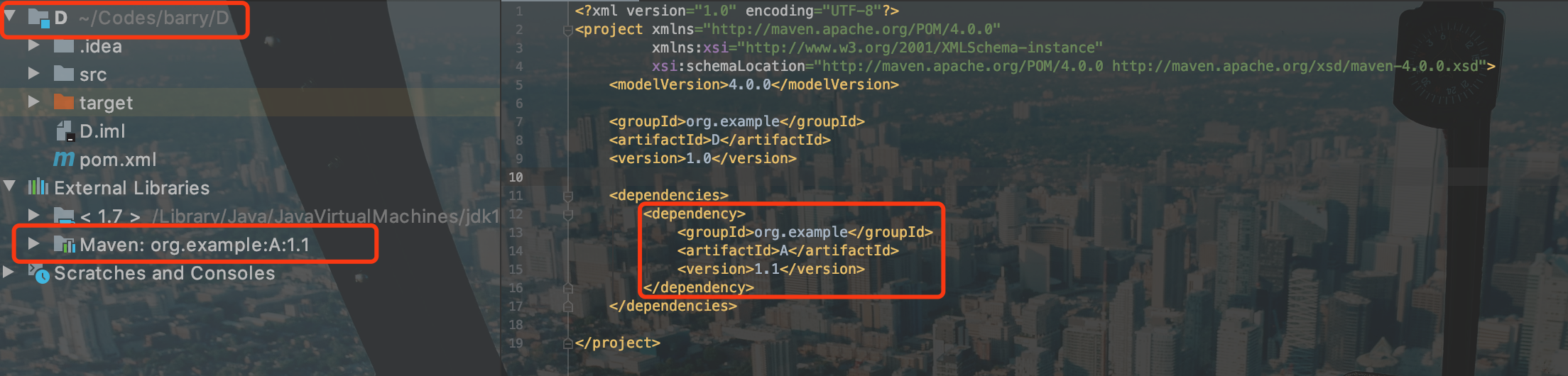 4.3 D工程pom引入A 1.1 依赖