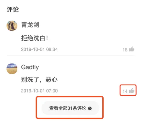 下图的是文章底部的一块迷你评论内容块,里面有一个点赞按钮。