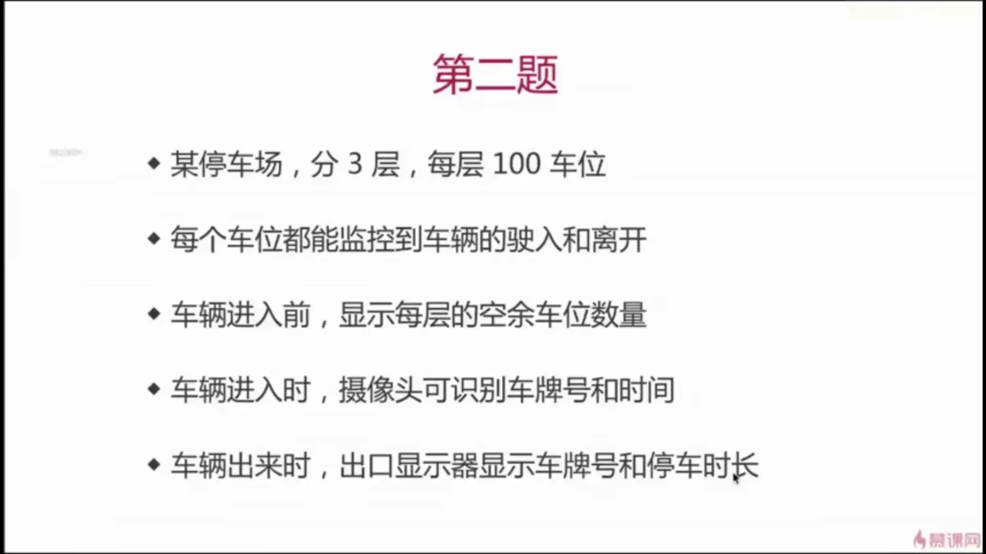 //面试题停车场停车显示//显示屏class Screen{show(car,inTime){console.log('车牌号',car.num)console.log('停车时间',Date.now() - inTime)}}//摄像头class Camera{shot(car){return {num:car.num,inTime:Date.now()}}}//停车场class Park{constructor(floors){this.floor = floor || [];this.camera = new Camera()this.screen = new Screen()this.carList = {} //存摄像头拍摄的车辆信息}in(car){// 通过摄像头获取信息const info = this.camera.shot(car)//停到某个停车位const i = parseInt(Math.random() * 100 % 100)const place = this.floor[0].place[i]place.in()info.place = place//记录信息this.carList[car.num] = info}out(car){//获取信息const info = this.carList[car.num]//将停车位清空const place = info.placeplace.out()//显示时间this.screen.show(car,info.inTime)//清记录,不然造成内存泄漏delete this.carList[car.num]}emptyNum(){return this.floor.map( floor=>{return `${floor.index}层还有${floor.emptyPlaceNum()}车位`}).join('\n')}}//层class Floor{constructor(index,place){this.index = indexthis.place = place || [];}emptyPlaceNum(){let num = 0;this.place.forEach(p =>{if(p.empty){num += 1}})return num}}//车位class Place{constructor(){this.empty = true}in(){this.empty = false}out(){this.empty = true}}//车class Car{constructor(num){this.num = num}}//测试//初始化停车场var floor = []for(var i = 0;i<3;i++){var place = []for(var j=0;j<100;j++){place[j] = new Place()}floor[i] = new Floor(i+1,place)}const park = new Park(floor)//初始化车辆const car1 = new Car(100)const car2 = new Car(200)console.log('car1进入')console.log(park.emptyNum())park.in(car1)console.log('car2进入')console.log(park.emptyNum())park.in(car2)console.log(park.emptyNum())console.log('car2离开')park.out(car2)console.log(park.emptyNum())