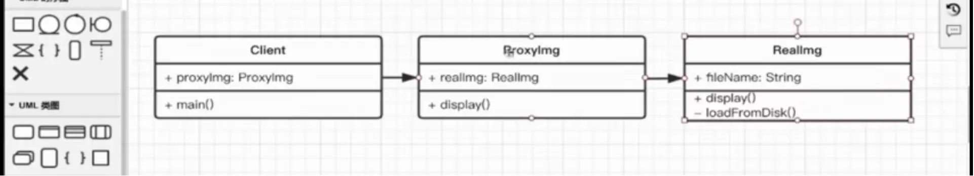 class ReadImg{constructor(fileName){this.fileName = fileName;this.loadFromDisk(); //初始化即从硬盘加载,模拟}display(){console.log('display...' + this.fileName)}loadFromDisk(){console.log('loading....' + this.fileName)}}//代理中,要有何ReadImg一样的方法display()class ProxyImg{constructor(fileName){this.readlImg = new ReadImg(fileName)}display(){this.readlImg.display(); //这样就可以直接访问ReadImg的方法}}//肯定不能直接new ReadImg对象,new代理对象let proxyImg = new ProxyImg('1.png')proxyImg.display()// 不管是用代理还是直接访问,地址都是一样,也就是说有共同的方法,这里就是display()