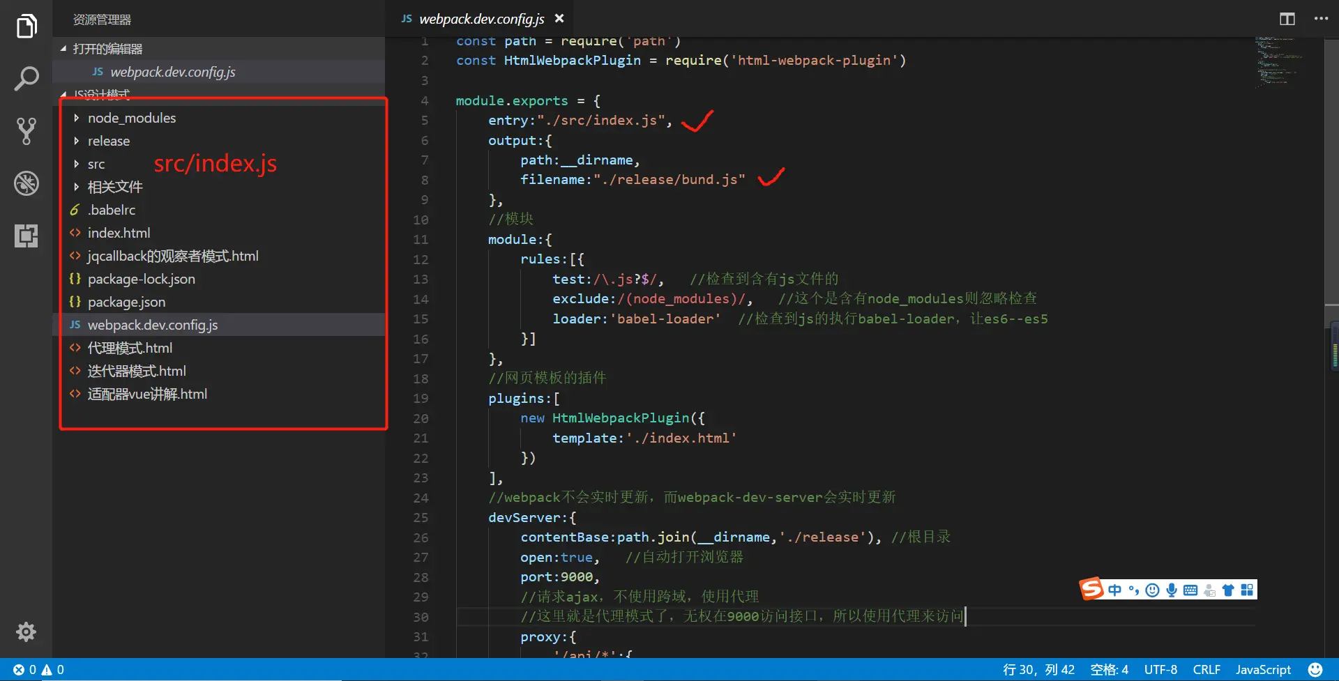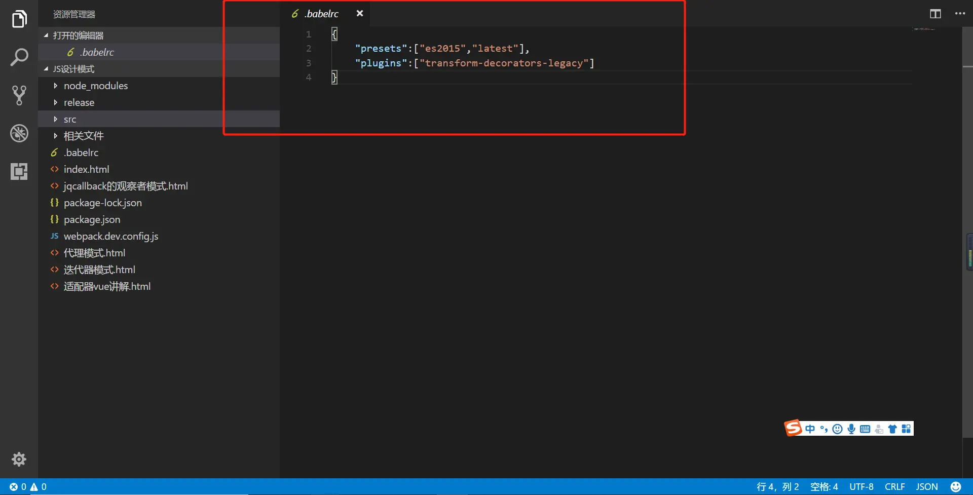 - 因为这里想在编辑器上更好的演示设计模式,所以这里简单的搭下环境(webpack、babel(为了让es6转为es5))。