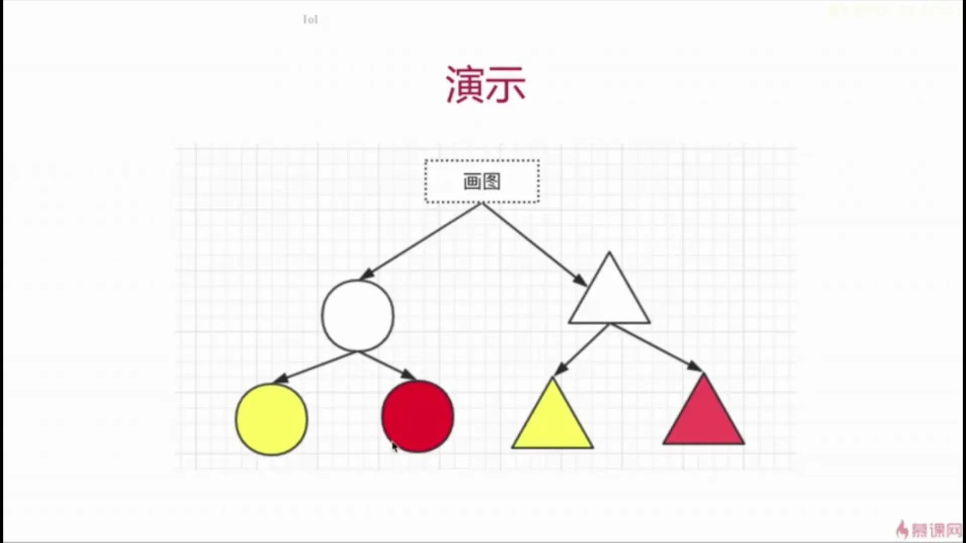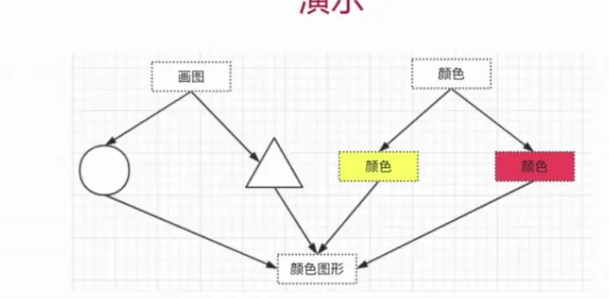 class Color{constructor(name){this.name = name;}}class Shape{constructor(name,color){this.name = name;this.color = color;}draw(){console.log(`${this.color.name} ${this.name}`)}}//测试let red = new Color('red');let yellow = new Color('yello');let circle = new Shape('circle',red);circle.draw()let triangle = new Shape('triangle',yellow)triangle.draw()