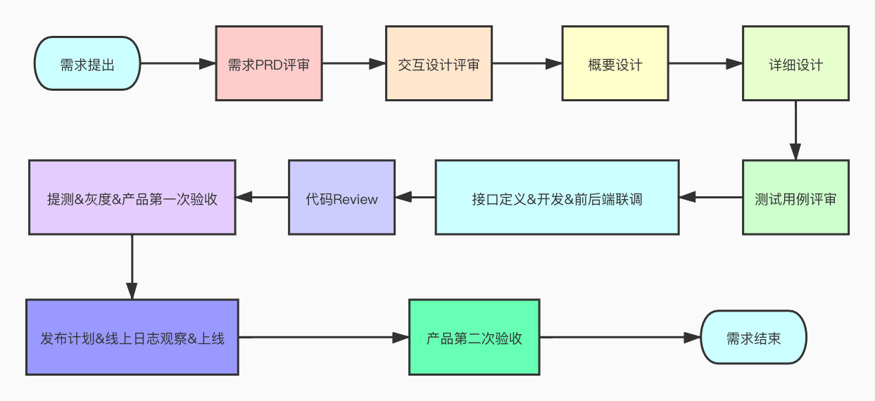 我们先看看一个产品有哪些研发流程,帅丙就用自己接触的阿里系的研发流程举例了,这也基本上是互联网大厂的研发流程了,可能细节有出入,但是绝对大同小异。