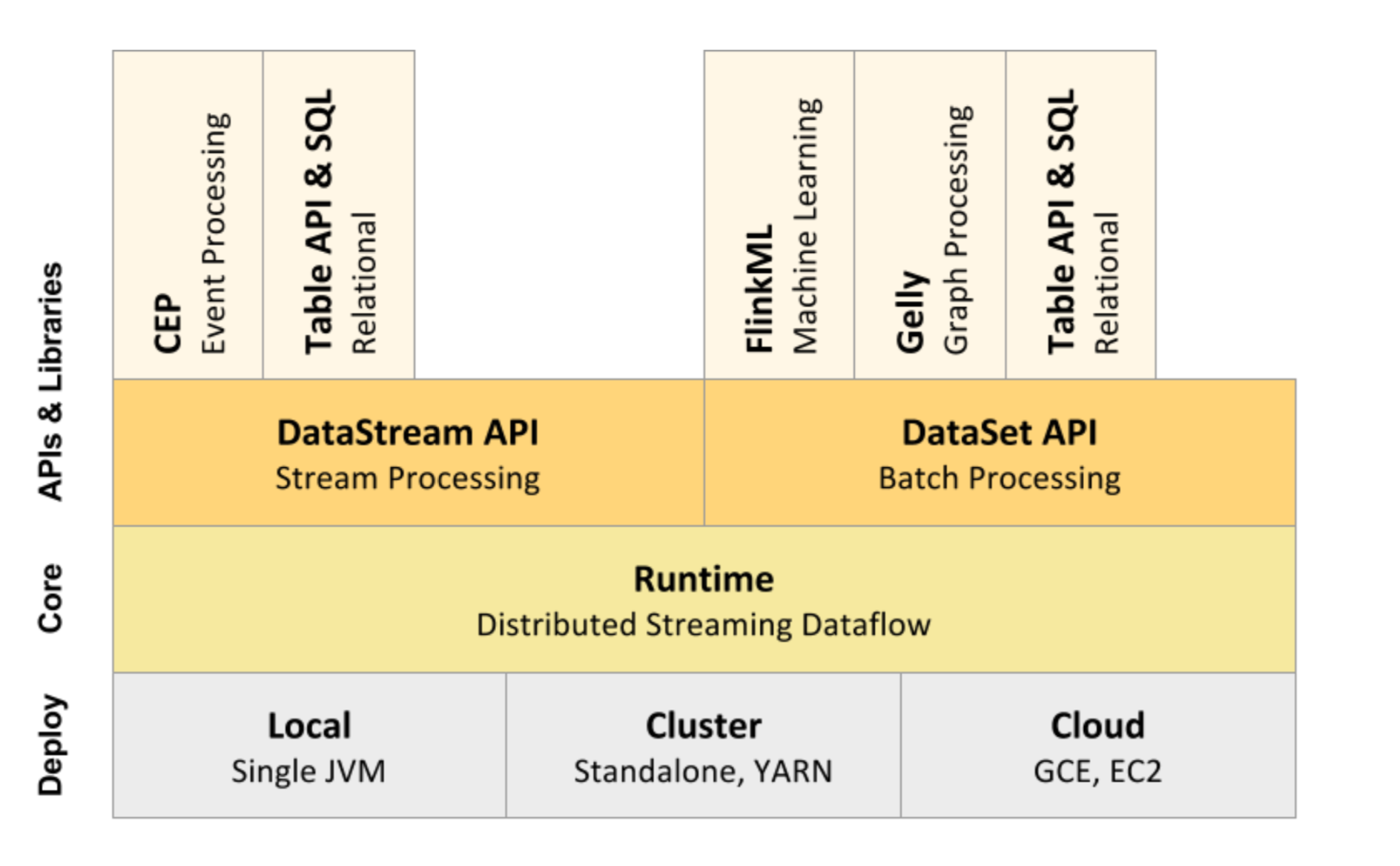 - 支持批处理和数据流程序处理
