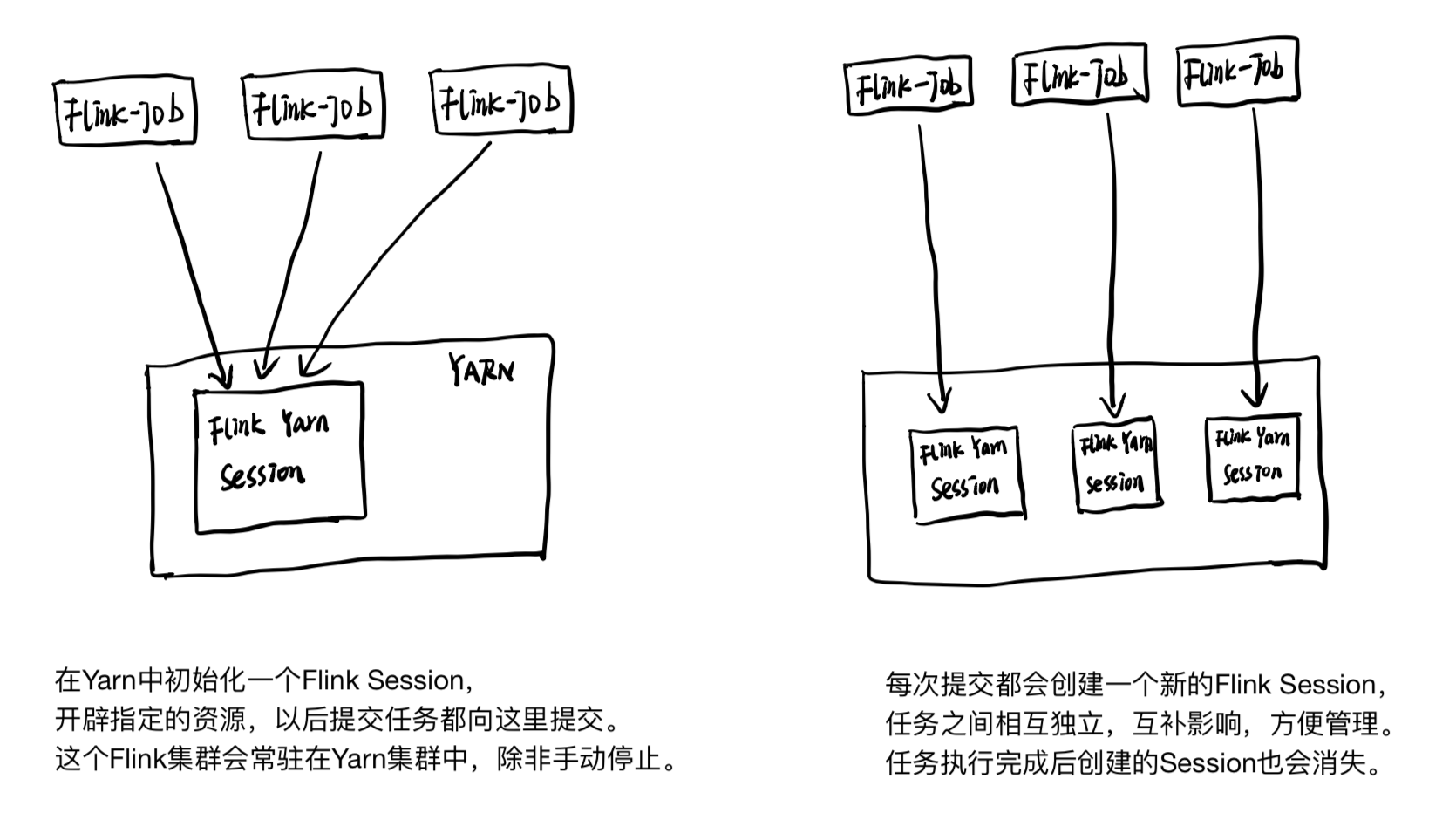 - Flink只是作为一个客户端,不需要常驻Yarn进程。