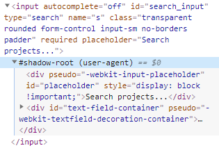 可以看出在input标签内出现了#shadow-root(user-agent),它包含了input组件内的DOM结构, 这就是所谓的Shadow DOM