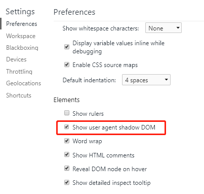 在平时我们是没办法从DevTools中看到Shadow DOM的,因为默认是隐藏的,需要手动设置,