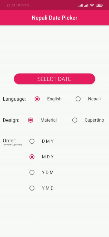 Material Style Date Picker with Bikram Sambat(Nepali) Calendar Support. Supports both Android and ios.