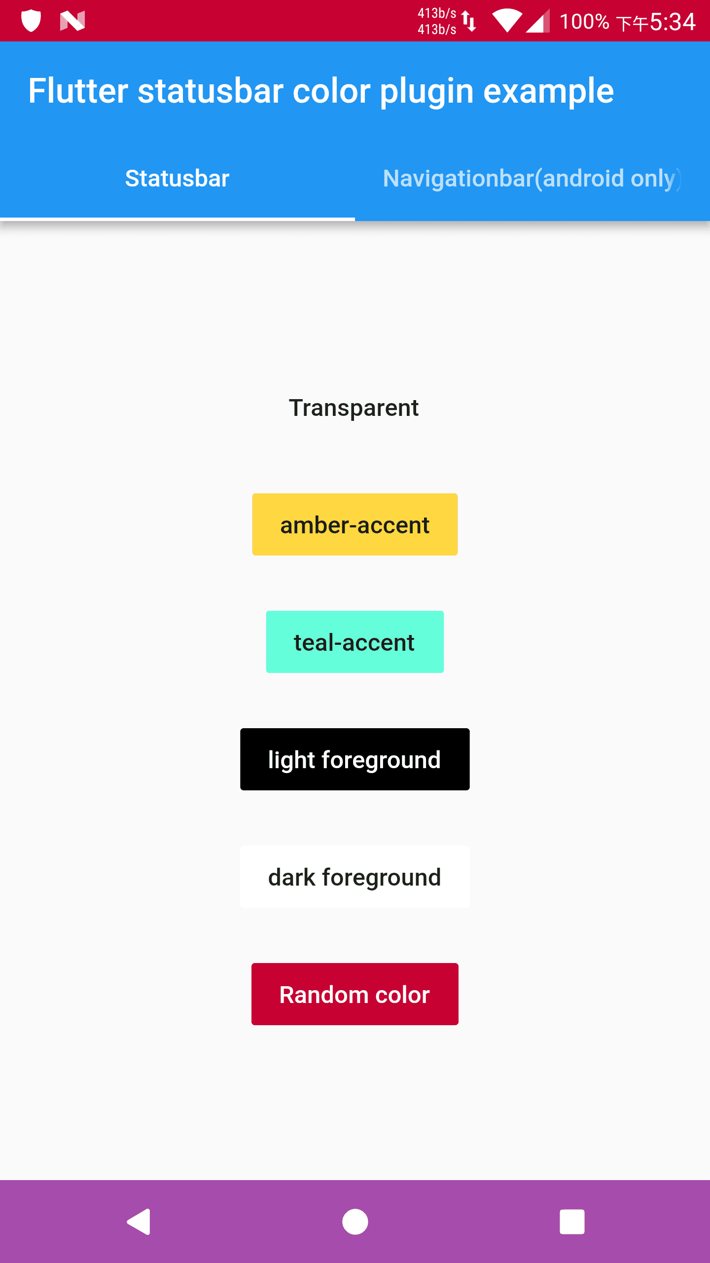 A package can help you to change your flutter app's statusbar's color or navigationbar's color programmatically.