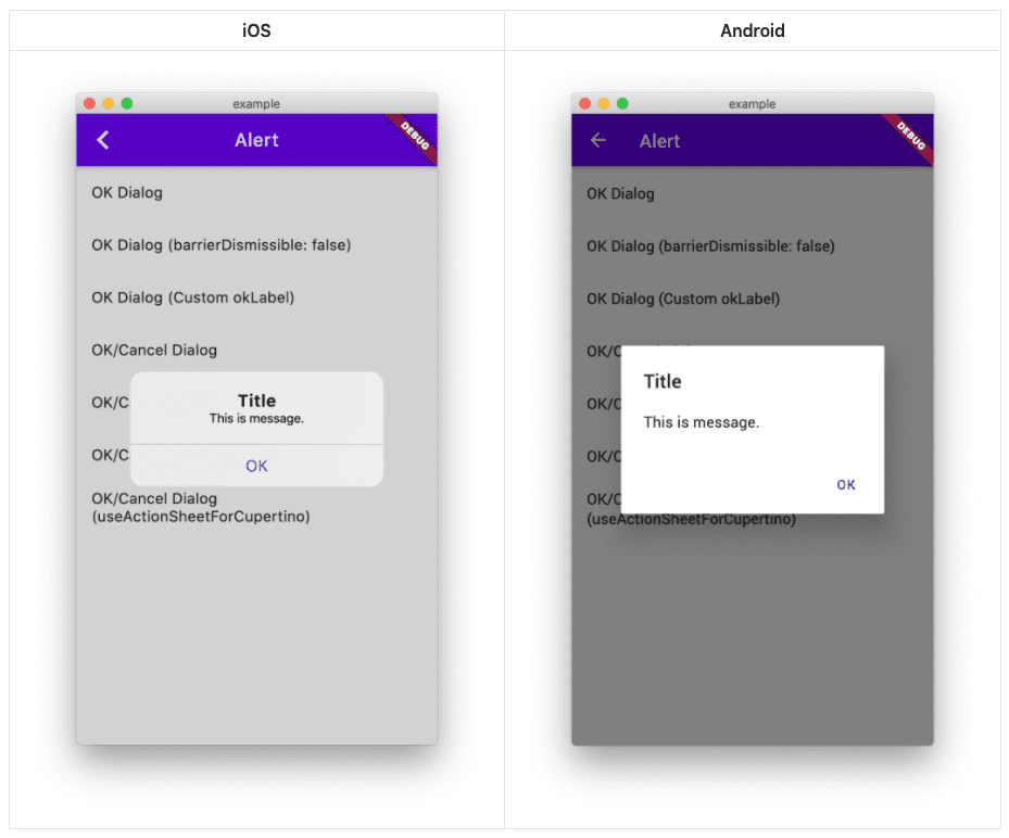 Show alert dialog or modal action sheet adaptively according to platform.
