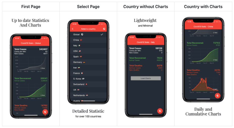 A mobile app developed with Flutter to view Covid19 statistics 🦠