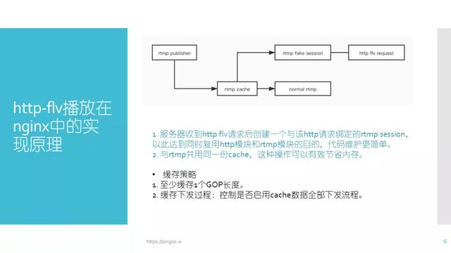 图中展示的是rtmp的缓存对于rtmp和http-flv这两个协议的支持。http-flv和rtmp二者共用一套缓存,其实rtmp本身传输的就是flv的数据,只不过是把tag-header给抛掉了。http-flv的下发与rtmp的下发唯一的区别点在于send函数不同:http-flv调用的是http的send函数,rtmp下发时调用的是原生的send函数,在下发前需要添加各自的协议头。二者共用一块内存可以达到节省内存的效果,并且实现业务统一,降低开发成本。