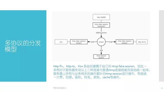 同样,我们可以根据上述思路继续扩展协议。假如我们在收到一个http请求之后,创建一个同样的rtmp-fake-session(逻辑上的session,与网络不相关),我们把它以消费者的角色插入到 stream当中。这样就可以从stream当中获取到需要向下分发的数据。需要注意的是:stream中最初保存的是rtmp数据而不是ts数据,无法直接获取ts数据。