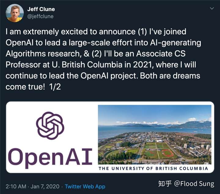 AI-GA的提出者Jeff Clune已经加入OpenAI去推进大规模的AI-GA研究!