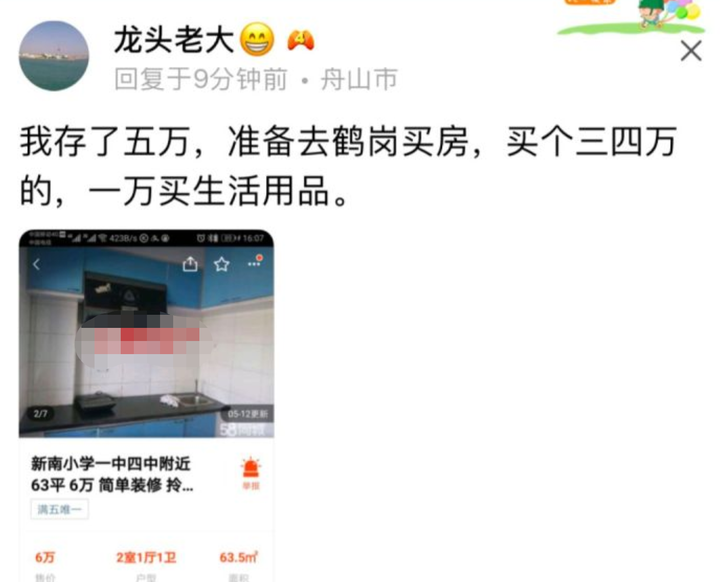 从鹤岗当地中介挂出的牌子看,那里不仅有5万的房子,还有1.6万的房子,按均价看,一平方米仅700元,这个价格,北上深的程序员可能花一个月工资就可以刚一套!