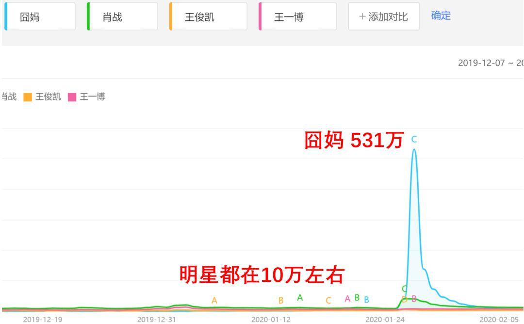 顺便查了一下,疫期最受关注的电影非《囧妈》莫属,其百度指数在1月25日飙升到531万,碾压所有的明星。