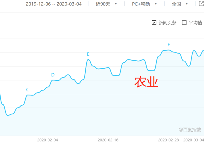 农业这个关键词的百度指数也略有上升,大概比疫前上升了10%。