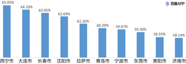从百度搜索大数据得知,目前大部分城市的 线下复工率 均超过 50%,线下复工率最高的是青海省的省会西宁。
