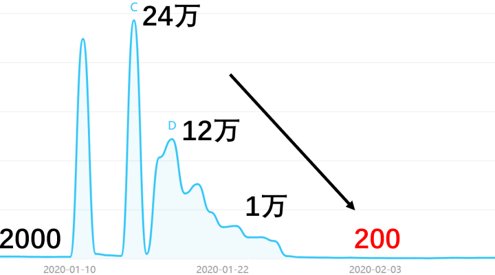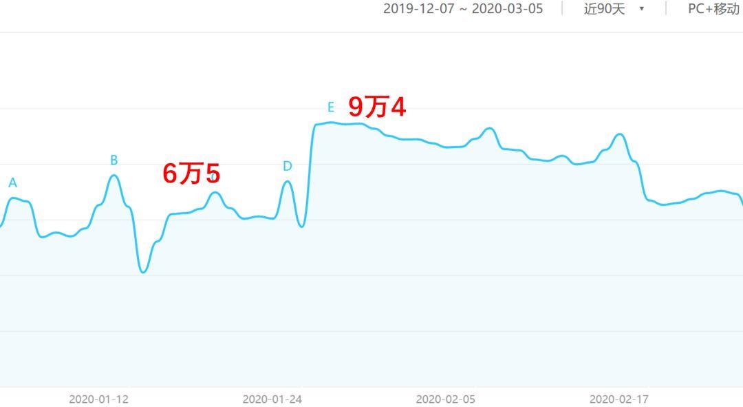 电影票 这个关键词的百度指数在1月中旬的春节前夕飙升到24万,大家都摩拳擦掌打算抢春节档的票,疫情一来,仿佛热火上当头浇了一桶冰块,指数一下掉到200,仅是疫前的1/10,彻底凉凉。