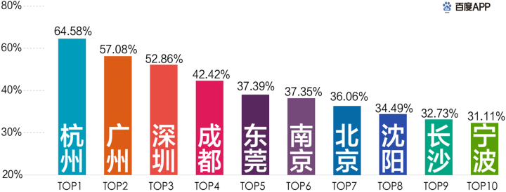 相比北京的吃货属性,成都 则是逛街属性最强,线下商场超市的复工率全国最高。