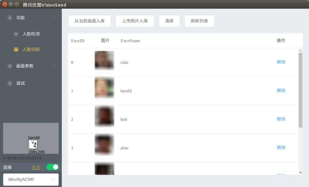 通过USB把VisionSeed连上电脑后,识别出来一个Video0设备和ttyACM0设备,用配置工具打开ttyACM0,就能源源不断的获取到实时分析数据了。