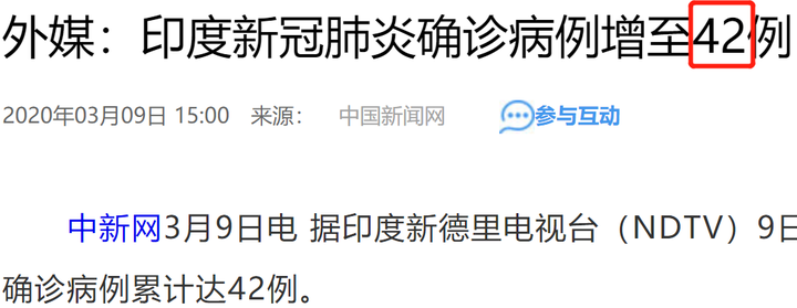 截至3月9日,印度新冠状肺炎确诊42例。